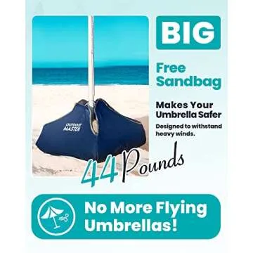 OutdoorMaster Beach Umbrella with Sand Bag - Secure UPF 50+ Protection & Stylish Design