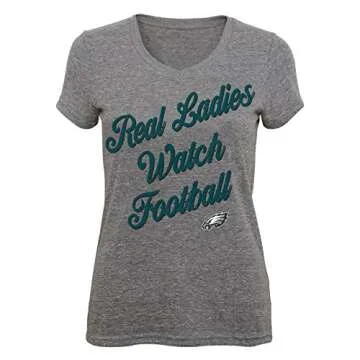 Outerstuff NFL Junior Girls Real Short Sleeve Tee, Philadelphia Eagles, Dark Grey Heather, XL(15-17)