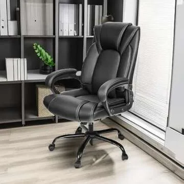 OUTFINE Office Chair Executive Office Chair Desk Chair Computer Chair with 5-Year hydrolysis-Resistant Leather Spring Cushion Ergonomic Support Tilting Function Upholstered in Bonded Leather Black