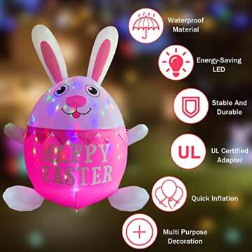OuToorDoor Easter Inflatables Outdoor Decorations - 8 FT Easter Inflatable Bunny Easter Yard Decorations Easter Blow up Yard Decorations Built-in Flashing LED Light,Party,Yard,Garden