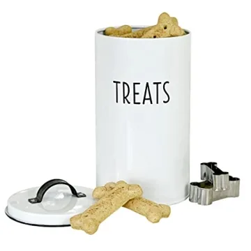 This robust storage bin boasts a spacious capacity that can hold up to 10 pounds of dog food, making it ideal for both small and medium-sized bags of treats. It also comes paired with two adorable dog bone cookie cutters, enabling you to bake tasty homemade treats for your furry friend. The aesthetically pleasing design means you won't mind leaving it out on display, as it radiates a warm and inviting vibe.
