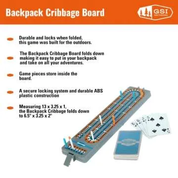 Show moreIntroducing the Outside Inside Backpack Cribbage Game, a must-have for any game enthusiast seeking adventure without the bulk! This compact and lightweight cribbage board is designed for those who cherish gaming on the go. Weighing in at just 7.4oz, it’s ideal for road trips, camping excursions, or leisurely afternoons in your backyard. Crafted from high-quality plastic, this cribbage board guarantees durability and longevity, skillfully built to withstand the elements while preserving the joy of classic gameplay.