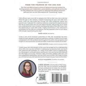 Whether you are preparing for a regulatory exam or seeking to deepen your understanding of CRA’s importance in community development, this book is a treasure trove of knowledge. Join countless other CRA professionals who have found guidance and confidence through Linda's insightful narrative. Equip yourself with the necessary tools to foster community growth and enhance your bank's commitment to positive reinvestment practices.
