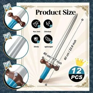 The swords measure approximately 24 x 6.7 inches when fully inflated, making them perfectly sized for children and adults alike. Crafted from high-quality PVC material, these swords are not only lightweight and durable but are also designed to withstand hours of playful antics without fading or breaking.
