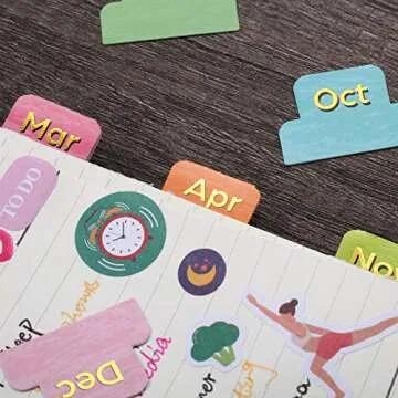 Outus 24 Pieces Monthly Tabs for Planner Adhesive Monthly Planner Tabs Stickers Colorful Neutral Metallic Stickers Designer Accessories Decorative Adhesive Index for Office Study