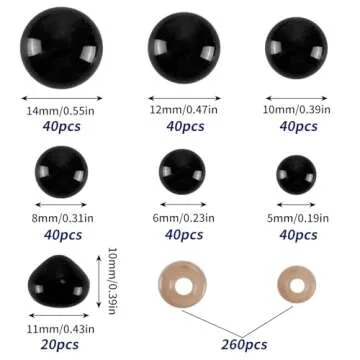 Show moreUnlock the doors to your creativity with the OUTUXED 520-Piece Plastic Safety Eyes and Noses Set, the ultimate crafting companion for all crochet and amigurumi enthusiasts! This extensive package includes a diverse range of high-quality plastic safety eyes in sizes from 5mm to 14mm, paired with 20 doll noses in a convenient 11mm size. Each piece is accompanied by a robust washer, ensuring that your finished projects not only look adorable but also maintain their delightful charm for years to come.