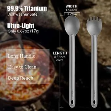 OUTXE Titanium Long Handle Spork and Spoon, 8.7-Inch Soup Spoon, Camping Spork and Spoon, Eco-Friendly Coffee Spoon, Spork and Spoon Set