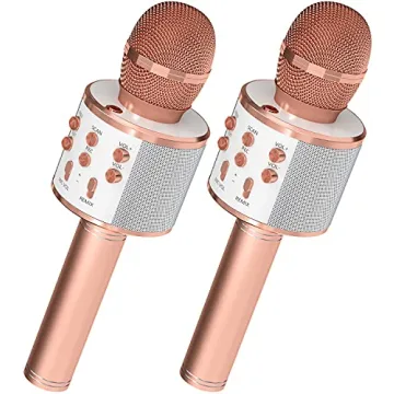 OVELLIC 2 Pack Karaoke Microphone for Kids, Wireless Bluetooth Karaoke Microphone for Singing, Portable Handheld Mic Speaker Machine, Gifts Toys for Girls Boys Adults All Age (Rose Gold)