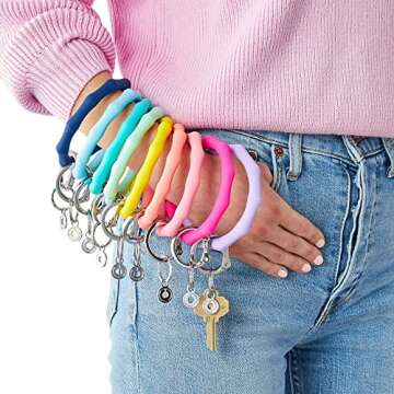 Made from waterproof silicone, this key ring is both practical and hygienic. Cleaning is a breeze—just wash it with soap and water for that fresh, germ-free feeling. Plus, our silicone is non-toxic, making it safe even for your teething baby to grab hold of, giving you peace of mind. The one-size-fits-all design, with a generous 3.75-inch diameter, allows it to sit comfortably on your forearm or over your elbow, keeping your hands free and your life organized.