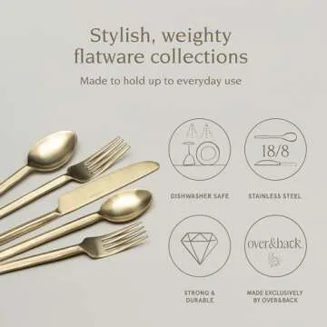 over&back 20pc Hand-Forged Flatware Cutlery Set - Comes with 4 Dinner Forks, 4 Salad Forks, 4 Dinner Knives, 4 Dinner Spoons, and 4 Teaspoons - 18/8 Stainless Steel - Dishwasher-Safe - Champagne