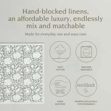 over&back Hand-Blocked Printed Cotton Cloth Napkins - Washable Napkins Set for Mixing, Matching, and Creating a Custom Home Decor Tablescape - Green Floral