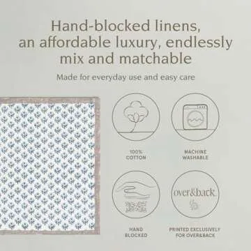 Over&Back Hand-Blocked Printed Cotton Cloth Napkins - Blue Bloom - Washable – Perfect for Mixing and Matching