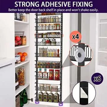 Over the Door Pantry Organizer, 10-Tier Adjustable Pantry Door Organizer, Kitchen Pantry Organization and Storage Hanging Metal Over Closet Door Spice Rack Can Organizer, Black Pantry Storage Shelves