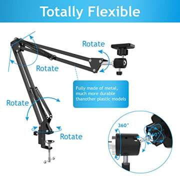 Overhead Magnetic Phone Mount, One-Hand Operation Gooseneck Swing Phone Arm Compatible with Camera Ring Light, Desk Tripod for Filming YouTube Video Recording