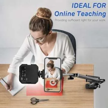 Overhead Phone Mount, Articulating Arm Cell Phone Holder with LED Light, Flexible Phone Stand for Live Streaming, Video Recording, Painting Lighting, Cooking