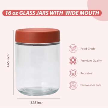 Overnight Oats Containers with Lids 16 oz Glass Jars with Lids 6 Pack Glass Mason Jars with Airtight Lids, Prefect Overnight Oats Containers with lids for Snacks, Yogurt, Chia Pudding (6 Pack)