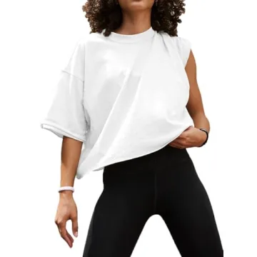Oversized Workout Tops for Women Crew Neck Roll Hem Soft Crop Tops Basic Workout Yoga Loose Fitting T Shirt White S