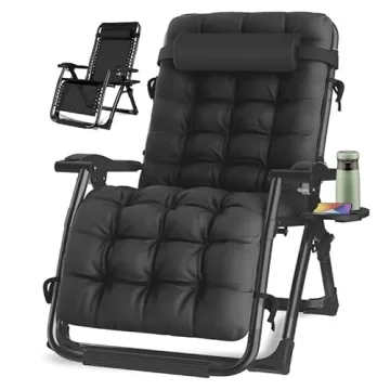 Oversized Zero Gravity Chair - Portable Reclining Patio Lounger with Cushion and Cup Holder