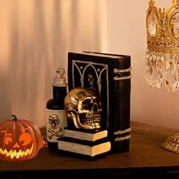 Ovewios Halloween Skull Decor - Gothic Skeleton Head and Book Resin Statue Collectible Figurines for Halloween Holiday Party Room Fall Home Ornaments