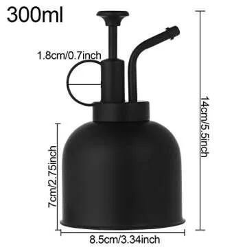 Show more Introducing the Ovida Metal Plant Mister Watering Spray Bottle, a stunning blend of functionality and design crafted to provide the utmost care for your plants. With a sleek black finish, this 10oz (300ml) watering can is perfect for indoor succulents and a variety of houseplants, bringing a touch of elegance to your gardening routine. The ergonomic top pump ensures a smooth, consistent spray, allowing you to deliver just the right amount of moisture to your greenery. Ideal for not just watering but also cleaning delicate leaves, this versatile tool meets all your indoor gardening and cleaning needs.