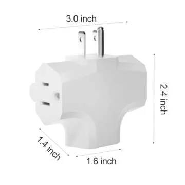 Introducing the oviitech Three Plug Outlet Adapter, a game-changing solution that expands your electrical capabilities effortlessly! This cleverly designed T-shaped adapter transforms a single outlet into three grounded outlets, giving you the power to charge multiple devices simultaneously. Its heavy-duty vinyl construction ensures durability, making it perfect for both indoor and outdoor use. With an impressive capacity of up to 15 amps, 125 volts, and 1875 watts max, this UL-listed power...