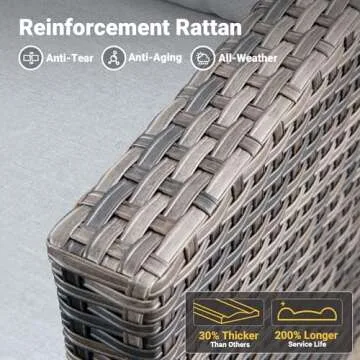 Show moreElevate your outdoor experience with the ovios 7 Pieces Patio Furniture Set. This stunning ensemble is perfect for any deck, porch, or patio, blending style and functionality effortlessly. Featuring luxurious **swivel rocking chairs** that allow for a full 360-degree rotation, you can enjoy the gentle sway of relaxation with a uniquely designed noise-free mechanism that ensures tranquillity as you rock back and forth. Crafted from high-quality premium wicker rattan, this set marries a classic aesthetic with modern durability, boasting a rust-resistant steel frame that promises stability and long-lasting outdoor enjoyment.