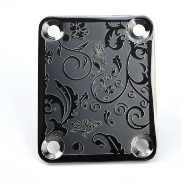In addition to its robust functionality, the black guitar neck plate boasts a modern and stylish appearance, featuring exquisite engraved patterns that not only add a personalized touch to your instrument but also ensure a wear-resistant and colorfast performance. The neck plate measures 64mm x 52mm, with a thickness of 2mm, and comes with precise mounting hole specifications for seamless installation, securing your guitar's neck effortlessly.
