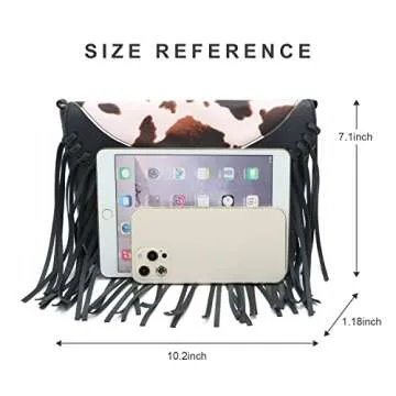 Show moreIntroducing the Oweisong Fringe Crossbody Purse – the epitome of style and functionality, perfect for modern women who appreciate both fashion and practicality. Crafted from high-quality faux leather, this chic fringe purse not only boasts an attractive design but also provides exceptional durability. Standing at a medium size of 10.2 x 7.1 x 1.2 inches, it’s ideal for carrying your daily essentials, making it a versatile complementary piece for any occasion. Adjust the detachable strap to comfortably wear it as a shoulder bag, crossbody purse, or even as a trendy clutch for those special outings.