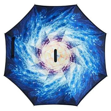 What sets this umbrella apart is its inside-out design, allowing you to open it seamlessly without getting drenched. Say goodbye to soggy clothes and wet floors; when closed, the wet side resides inside, keeping you and your belongings completely dry. The availability of a free-grip frosted handle is an added benefit, letting you cross the C-shaped handle over your arm for hands-free operation, perfect for when you're juggling your phone or bags.