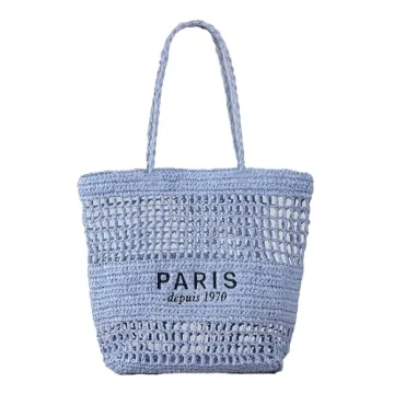 OWGSEE Straw Bag for Women Summer Trendy Foldable Mesh Crochet Tote Bag Straw Beach Purses and Handbags for Vacation (Blue)