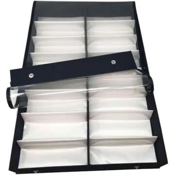 Show moreIntroducing the OWL 16 Pcs Sunglasses Eyewear Glasses and Watches Display Tray Case, a perfect blend of functionality and elegance. This premium storage solution is designed for jewelry enthusiasts and anyone looking to organize their eyewear and accessories in style. Each tray holds up to 16 pieces, making it ideal for displaying your collection while keeping it safe and easily accessible. Made from high-quality materials, its sturdy construction ensures that your valuables are protected from scratches and damage. With a sleek and modern design, this display case is not only practical but also adds a touch of sophistication to your home decor.