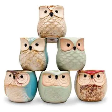 Adorable Owl Succulent Pots - 2.5 Inch Mini Ceramic Planters, 6 Pack