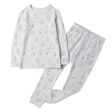 Owlivia 100% Organic Cotton Baby Long Sleeve Pajama Sets for Toddlers, Grey Rabbit