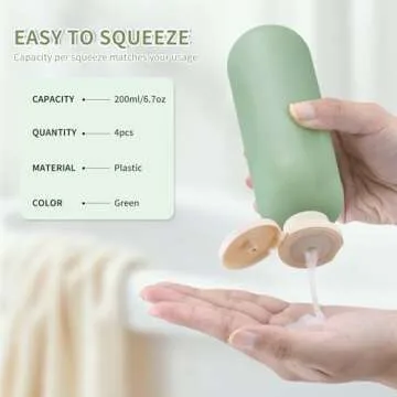 Show moreIntroducing the Owlyee 6.7oz Travel Shampoo Bottles, your ultimate travel companion designed with the modern traveler in mind. Each pack comes with four high-capacity bottles, each holding a generous 6.7oz (200ml) of your favorite liquids, making them perfect for longer trips where smaller 3 oz containers just won't suffice. Whether you're heading out for a weekend getaway or a week-long vacation, these bottles ensure you have enough shampoo, conditioner, or lotion without the hassle of constant refills. Additionally, the vibrant green color adds a touch of style to your travel essentials, ensuring you travel in fashion while keeping your items organized.