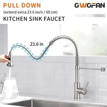 Its high-performance aerator guarantees a strong flow rate, making dishwashing and food preparation more efficient than ever. With its easy-to-follow installation instructions, you or your loved one can effortlessly upgrade their kitchen without the need for professional help. Users rave about the impressive water pressure and impressive functionality of this faucet, making it a favorite for many.