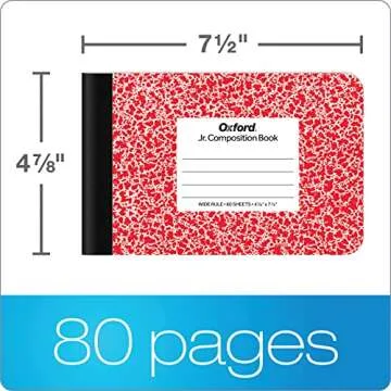 Oxford Jr. Composition Notebooks, Notebooks for School, School Supplies, Half Size, 4-7/8 x 7-1/2 Inches, Wide Ruled Paper, Kids Journal, 80 Sheets, Assorted Primary Covers, 6 Pack (63779)