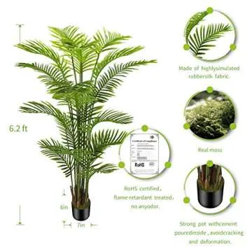 Transform your living space with our stunning Artificial Kentia Areca Palm Silk Tree, an exquisite decoration that brings a slice of tropical paradise right into your home. This highly realistic artificial tree is designed to emulate the beauty of a real palm, allowing you to enjoy the charm of greenery without any maintenance hassle. Made from durable polyester material, it features detailed simulation textured leaves crafted from rubber silk fabric, enhancing its lifelike appearance.