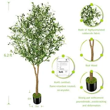OXLLXO 6ft Full Artificial Olive Tree (72in) with Plastic Nursery Pot Faux Olive Silk Tree, Fruits Fake Plant for Office House Farmhouse Living Room Home Decor (Indoor/Outdoor)