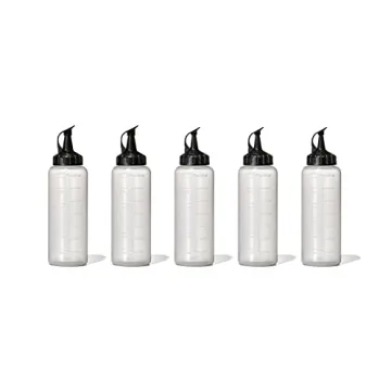 Show moreIntroducing the OXO Good Grips Chef's Squeeze Bottle Medium - 5 Pack, the ultimate solution for your culinary needs! Designed by the trusted OXO brand, famous for their ergonomic kitchen tools, these bottles are a chef’s best friend. Each bottle holds 12 oz/355 mL and includes three thin-tipped caps for precise pour and two thick-tipped caps perfect for sauces and dressings. The innovative design ensures that the caps remain attached yet stay open while you’re squeezing, allowing for effortless use and easy storage when not in use. Experience the perfect combination of functionality and style with these durable bottles, which are dishwasher safe and made from BPA-free materials, eliminating the concern of plastic leaching into your food.