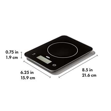 Show moreIntroducing the OXO Good Grips Everyday Glass Food Scale, a remarkable fusion of sophistication and functionality designed to elevate your cooking and baking experience. With an impressive weight capacity of 11 lbs (5 kg), this scale makes precise measurements absolutely effortless, allowing you to handle everything from delicate spices to larger food items with confidence. The elegant glass platform is not only a stunning addition to your kitchen decor but also incredibly practical, resisting stains and ensuring easy cleaning after each use. The large digital display boasts bright, easy-to-read numbers, making it simple to view your measurements at a glance, even from a distance.