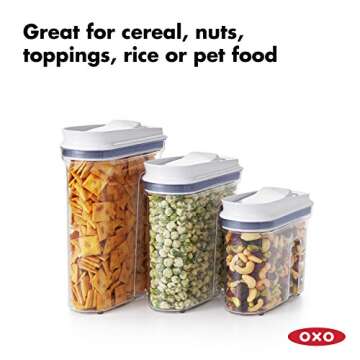 Also great for nuts, toppings, rice, pet food, bread crumbs and more