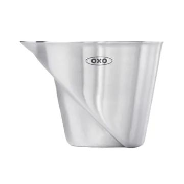 Show moreIntroducing the OXO SteeL Angled Measuring Jigger, the ultimate kitchen companion designed for both home cooks and cocktail enthusiasts. This innovative jigger features a patented angled surface, allowing you to easily read measurements from above without the need to stoop or tilt your head. Say goodbye to messy pours and inaccurate measurements; with convenient tablespoon and ounce markings clearly displayed, this jigger makes it simple to mix the perfect drink or measure precise amounts for your favorite recipes. Crafted from high-quality stainless steel, it not only looks sleek and professional but is also built to last, withstanding the rigors of everyday use.