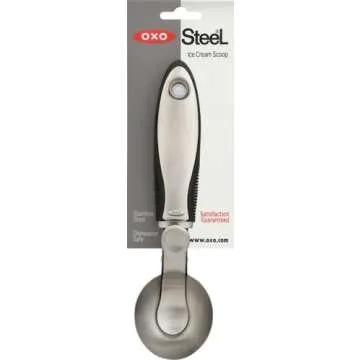 Show moreIntroducing the OXO SteeL Ice Cream Scoop, the ultimate kitchen tool that will transform your dessert experience into a delightful adventure! Crafted from high-quality stainless steel, this scoop features a remarkably innovative pop-up lever, designed for both style and functionality. With a sleek brushed stainless steel handle, it not only looks stunning on any countertop but also promises durability that will withstand the test of time. Ergonomically designed, the flexible fins on the handle ensure maximum comfort as you scoop your favorite frozen treats, allowing you to indulge without straining your wrist.