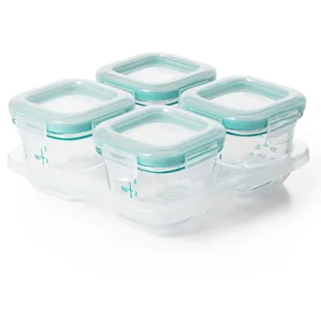 OXO Tot Glass Baby Blocks Food Storage Containers, Teal, 4 oz