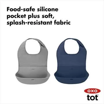 Unlike other competitors, the OXO Tot Bib stands out with its large, rigid scoop that remains open throughout feeding time, effectively catching all food debris. Parents rave about its durability and efficiency, making it a go-to product in their daily routines. Whether at home or out and about, you can rest assured that your baby's attire will remain clean and tidy during meals.