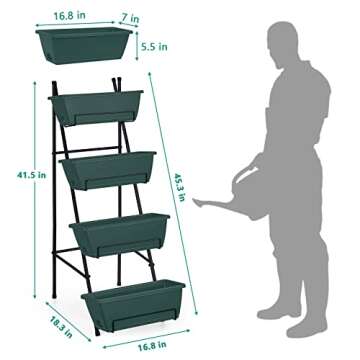 Show moreTransform your gardening experience with the OYEAL Raised Garden Bed 4 Tier Vertical Garden Planter. Designed thoughtfully for the modern gardener, this elevated planter is more than just a gardening accessory; it's a path to a lush, vibrant space that enhances the beauty of any patio, balcony, or backyard. With dimensions of 16.8 x 18.3 x 41.5 inches, its compact vertical design allows optimal space utilization, making it perfect even for smaller areas.