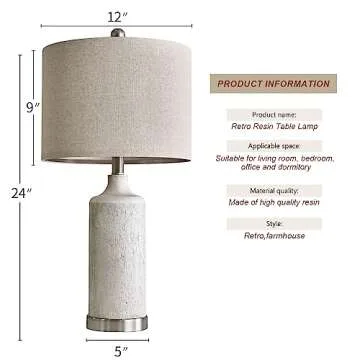 OYEARS 24” Table Lamp Set of 2, Bedside Table Lamps for Living Room, Farmhouse Lamp for Bedroom, Vintage Table Lamp for Nightstand, Boho Lamp for Room Decor, End Tables, Rustic, Resin, Beige