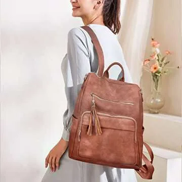 Show moreIntroducing the OYIFAN PU Leather Backpack Purse, your ultimate fashion companion tailored for the modern woman. Crafted from high-quality soft PU leather, this backpack exhibits a smooth cotton lining and robust gold-tone zipper hardware, ensuring both durability and a luxurious touch. This bag is not only waterproof and anti-scratch but also tear-resistant, capable of enduring the challenges of daily use while maintaining its stylish appearance. Its exquisite tassel detail adds an element of fun and fashion, making it the perfect accessory to elevate any outfit.