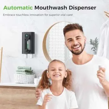 Oylik Automatic Mouthwash Dispenser 18.26 oz Touchless Mouthwash Dispenser for Bathroom 2 Magnetic Cup USB Rechargeable and 3 Dispensing Levels with Led Screen Wall-Mounted or Countertop Use-Black