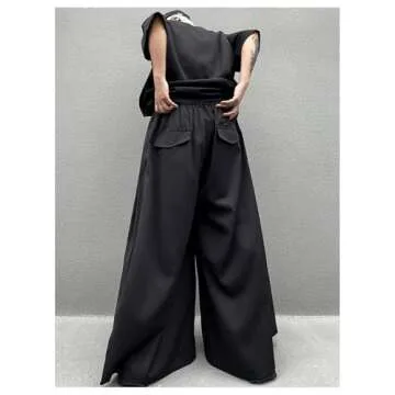 OYOANGLE Men's Baggy Wide Leg Pants Button Front Pleated Long Trousers Zipper Fly Palazzo Pants Streetwear Black Large